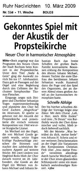 sanfte Orgel, der Neue Chor der Stadt Bochum sang unter der